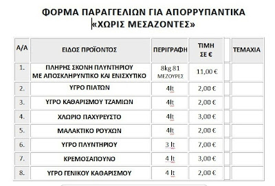Στο πνεύμα αυτό η Κίνηση Πολιτών “ΟΜΑΔΑ ΔΡΑΣΗΣ ΚΑΙ ΑΛΛΗΛΕΓΓΥΗΣ ΑΛΕΞΑΝΔΡΕΙΑΣ” σας προτείνει τα οικονομικότερα απορρυπαντικά που παρασκευάζει η ελληνική εταιρία “ΕΨΙΛΟΝ” στη γειτονική μας Πιερία.