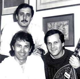 | Φώτο από το παρελθόν στην οποία διακρίνονται ο Χρήστος Νικολόπουλος, ο Γιώργος Νταλάρας και ο Λευτέρης Χαψιάδης |