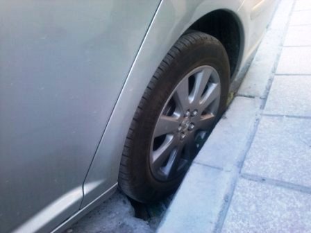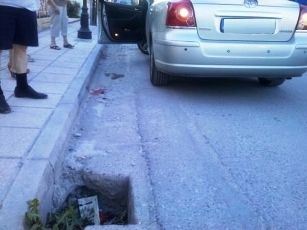 Σήμερα το απόγευμα έπεσα και εγώ θύμα των πολύμηνων κακοτεχνιών στους δρόμους της πόλης μας, που μας ταλαιπωρούν καθημερινά.