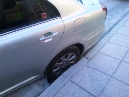 οδών Βιζυηνού –Κομνηνών, στην προσπάθειά μου (κινούμενος επί της Βιζυηνού) να παρκάρω το αυτοκίνητό μου στο αριστερό ρεύμα κάνοντας όπισθεν έπεσε ο αριστερός πίσω τροχός του αυτοκινήτου μου σε μία τρύπα «ξεχασμένη» από τον εργολάβο και το Δήμο …
