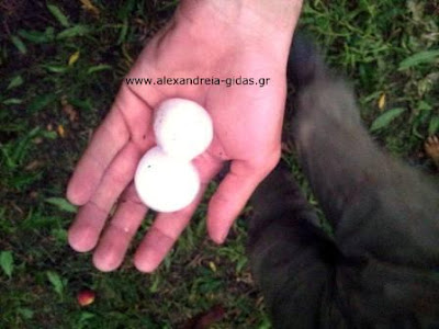 Φώτο: Τεράστιο σε μέγεθος το χαλάζι στη Μελίκη