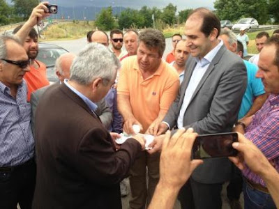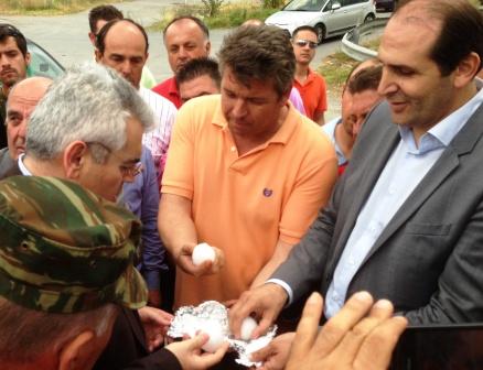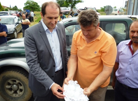 Οι αγρότες έδειξαν τα κομμάτια πάγου που είχαν φυλάξει στην κατάψυξη και έπεσαν από τον ουρανό τις προηγούμενες ημέρες. Ο Αναπληρωτής Υπουργός με έκπληξη αντίκρισε και τα κομμάτια του χαλαζιού και τα κατεστραμμένα φρούτα, αφού δεν περίμενε την καταστροφή τόσο μεγάλη λέγοντας χαρακτηριστικά “Τα είδα σε φωτογραφίες αλλά δεν περίμενα να είναι τόσο μεγάλα”. Για θεομηνία μίλησε ο Περιφερειάρχης Απόστολος Τζιτζικώστας μιλώντας στον Αναπληρωτή Υπουργό.