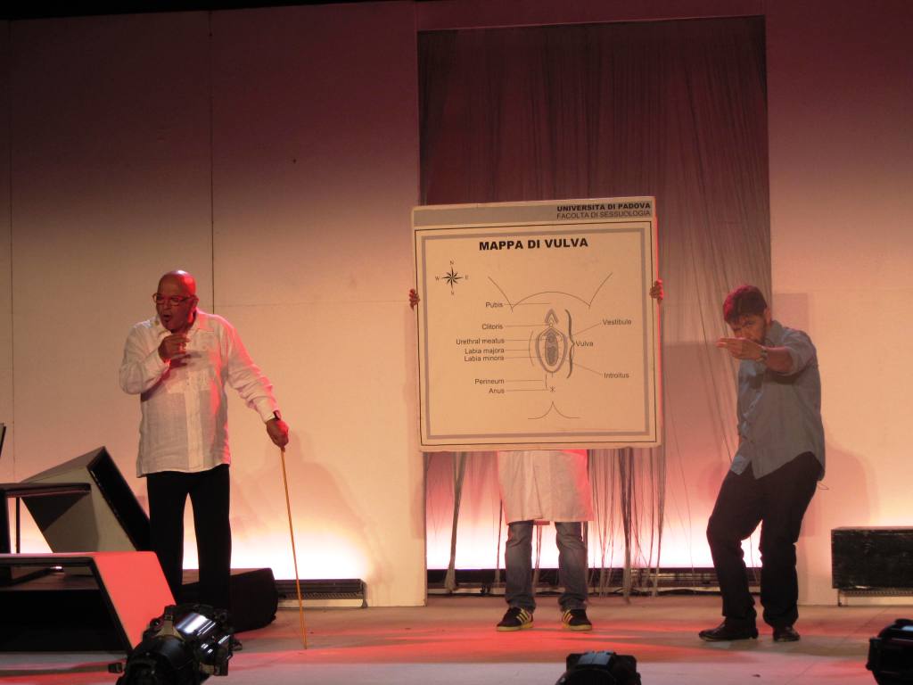 Ακούστηκαν επίσης πολλά ευτράπελα, όπως οι πολιτικές τους προελεύσεις και τωρινές διαφωνίες (ο ένας ΝΔ και ο άλλος ΣΥΡΙΖΑ) ή το γεγονός ότι ο σύζυγος ΔΕΝ ξέρει τα μυστικά του γυναικείου οργασμού! Έτσι ο θεραπευτής του μαθαίνει όσα πρέπει να γνωρίζει, με ένα μεγάλο χάρτη του γυναικείου κόλπου, αλλά και πυξίδα!..