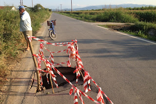 Στο μήκος της διαδρομής (περίπου 3 χιλιόμετρα) υπάρχει το αρδευτικό κανάλι τα νερά του οποίου περνάνε κάτω από τον δρόμο με αποτέλεσμα να “φαγωθεί” η άσφαλτος και να δημιουργηθεί το πρόβλημα. “Ευτυχώς δεν θρηνήσαμε θύματα” συμπλήρωσε ο κύριος Διακόπουλος, όμως η εκδήλωση του προβλήματος έρχεται σε ένα χρονικό σημείο στο οποίο πολλοί αγρότες οι οποίοι έχουν χωράφια παραπλεύρως του δρόμου πρέπει να συνεχίσουν τη δουλειά τους αφού βρισκόμαστε στην κορύφωση της αγροτικής περιόδου.