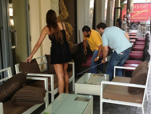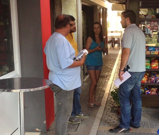 Παρασκευής, υπάλληλοι του δήμου συνοδευόμενοι από υπάλληλο της Τεχνικής Υπηρεσίας μέτρησαν τις αποστάσεις (δύο μέτρα από τα καταστήματα) και σημάδεψαν με κόκκινη μπογιά τα σημεία στα οποία θα γίνει η διαγράμμιση. Δεν έλειψαν οι εντάσεις με τους καταστηματάρχες οι οποίοι εξήγησαν ο καθένας για το μαγαζί που διαθέτει, για ποιον λόγο είχαν ζητήσει από την Επιτροπή Ποιότητας Ζωής του δήμου Αλεξάνδρειας να ελέγξει κατά περίπτωση τα μαγαζιά αφού οι χώροι των καταστημάτων διαφέρουν από μαγαζί σε μαγαζί.