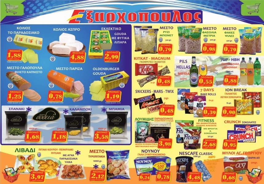 Τα τοπικά Σούπερ Μάρκετ “ΕΞΑΡΧΟΠΟΥΛΟΣ” σε συνεργασία με το Αλεξάνδρεια-Γιδάς σας παρουσιάζουν καθημερινά το φυλλάδιο προσφορών του καταστήματος. Μπορείτε να διαβάζετε καθημερινά το φυλλάδιο στον ειδικό χώρο των Σούπερ Μάρκετ ΕΞΑΡΧΟΠΟΥΛΟΣ τον οποίον μπορείτε να βρείτε πατώντας στο banner του καταστήματος. Διαβάστε το νέο φυλλάδιο το οποίο ισχύει από 27/09 έως 19/10: