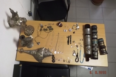 Σε έρευνα στην οικία του συλληφθέντος βρέθηκαν και κατασχέθηκαν διάφορα κοσμήματα, κυρίως μπρούτζινα και ασημένια, καθώς και διάφορα αντικείμενα, μέρος των οποίων αποδόθηκε στους νόμιμους κατόχους του.