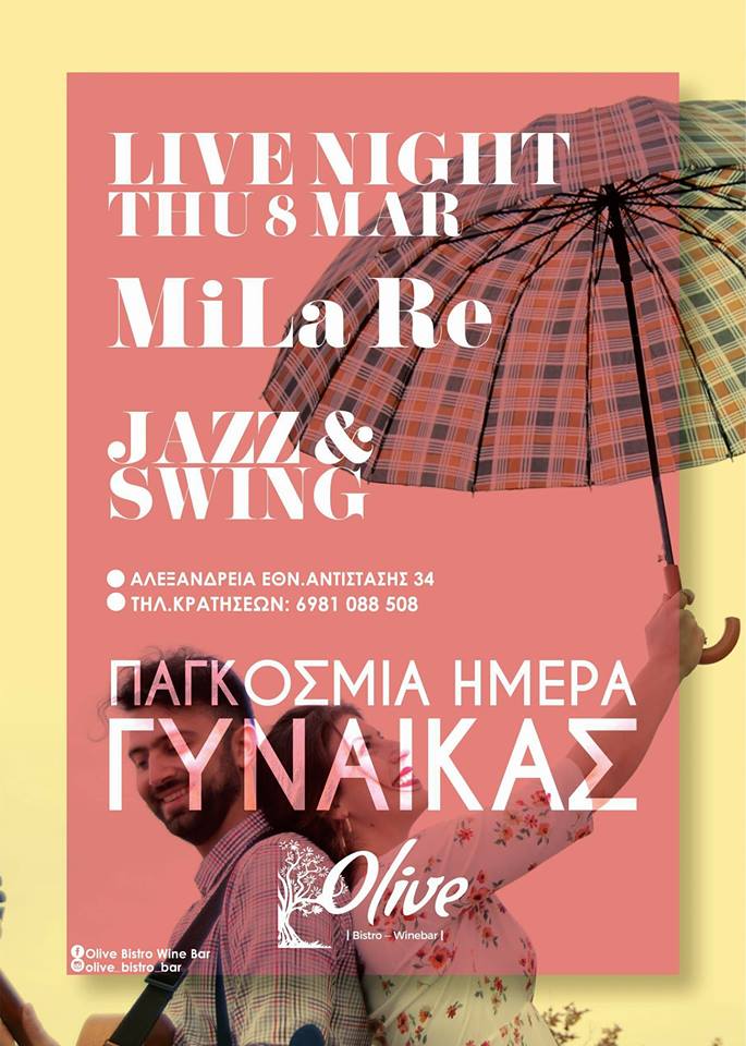 Το OLIVE Bistro Wine Bar σας προσκαλεί σήμερα Πέμπτη 8 Μαρτίου στον πεζόδρομο Αλεξάνδρειας για να γιορτάσετε μαζί την Ημέρα της Γυναίκας.