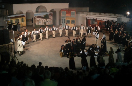 Εντυπωσιακή και με πολύ γέλιο ήταν πραγματικά η χθεσινοβραδινή παράσταση στο αμφιθέατρο της Αλεξάνδρειας η οποία περιείχε… δημοτικούς χορούς, τραγούδια αλλά και θεατρικό με ντόπια μασλάτια. Η παράσταση αναφέρονταν στην εποχή όπου η Λαογράφος Αγγελική Χατζημιχάλη, ήρθε στο Ρουμλούκι και κατέγραψε τα ήθη, τα έθιμα και της παραδόσεις του τόπου. Στην βραδιά αυτή συμμετείχαν ο Πολιτιστικός Σύλλογος Σχοινά, Νεοχωρίου «Η Πηνελόπη Δέλτα», Κ.Ε.Ρ.ΛΑ.Π. Αγκαθιάς, Νεοκάστρου, Παλαιοχωρίου – Λιανοβεργίου « Ο Φίλιππος» και ο «Αστήρ» Αγκαθιάς».Την παράσταση έκλεψε η φωτογράφος της βραδιάς, η οποία ήταν μία Γαλλίδα που επισκέφθηκε το Ρουμλούκι με την Αγγελική Χατζημιχάλη και που δεν γνώριζε καλά την Ελληνική γλώσσα.