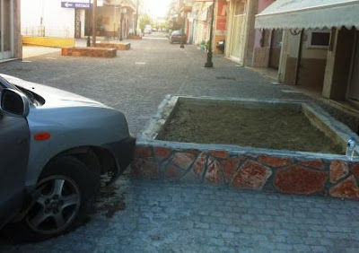 τον Μασούτη αριστερά στον στενό του λογιστικού γραφείου Ζωγράφος) στην προσφάτως ανακαινισμένη από την ανάπλαση οδό της Φιλίππου. Μπροστά από την βιοτεχνία Παπαδήμας υπάρχει ένα τεράστιο παρτέρι (χαρακτηρισμένο από τους κατοίκους του δρόμου ως καινοτάφιο ή οικογενειακός τάφος λόγω του μεγέθους και της εμφάνισής του) το οποίο ο οδηγός του οχήματος δεν κατάφερε να αποφύγει χτυπώντας με την δεξιά πλευρά του αυτοκινήτου πάνω του. Όπως θα δείτε στα φωτογραφικά στιγμιότυπα λίγο πιο κάτω στον ίδιο δρόμο υπάρχουν μικρότερα παρτέρια τα οποία αναγκάζουν τους οδηγούς να κάνουν ζιγκ ζαγκ για να τα αποφύγουν. Δεν χρειάζεται να πούμε κάτι περισσότερο και για την κατάσταση του νέου οδοστρώματος που τοποθετήθηκε στη συγκεκριμένη οδό. Οι κάτοικοι της οδού μας είπαν πως διαμαρτυρήθηκαν πολλές φορές για την τοποθέτηση του συγκεκριμένου παρτεριού μπροστά στα σπίτια και τα καταστήματά τους χωρίς ωστόσο να αλλάξει κάτι.