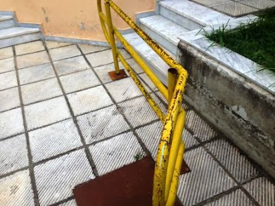 Περνώντας χτες από το 1ο Νηπιαγωγείο Αλεξάνδρειας διαπιστώσαμε πως η προστατευτική κίτρινη μπάρα η οποία προστατεύει τα παιδιά έλειπε από την είσοδο. Παρατηρώντας καλύτερα την είδαμε στον εσωτερικό χώρο του Νηπιαγωγείου. Προφανώς με το έργο της ανάπλασης, όταν περνούσαν τα πλακάκια η μπάρα αφαιρέθηκε αλλά ποτέ δεν τοποθετήθηκε πίσω στη θέση της μένοντας στην αυλή του Νηπιαγωγείου.Καλό θα ήταν έτσι όπως την αφαίρεσαν να την τοποθετούσαν πίσω στη θέση της γιατί πρόκειται για την ασφάλεια μικρών παιδιών και με τα θέματα αυτά δεν παίζουνε.