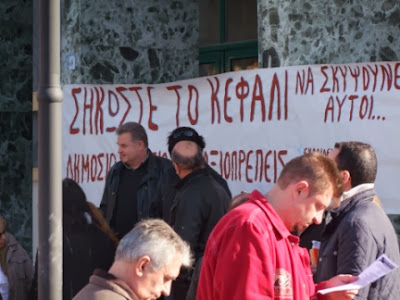 Ο σχολικός σύμβουλος που βρισκόταν στην αίθουσα των συνεδριάσεων του δημοτικού σχολείου Αλεξάνδρειας για να ενημερώσει τους διευθυντές, τελικά έμεινε μόνος του στην αίθουσα αφού οι διευθυντές μαζί με τους δασκάλους βρισκόταν έξω από το δημαρχείο.