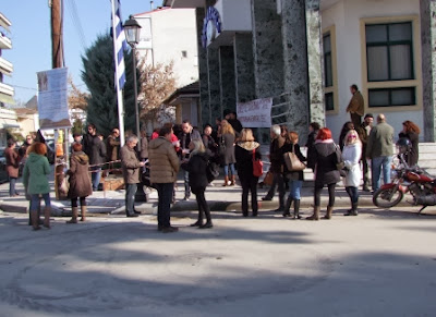 Έξω από το δημαρχείο Αλεξάνδρειας συγκεντρώθηκαν σήμερα Πέμπτη οι δάσκαλοι και οι διευθυντές των δημοτικών σχολείων της Αλεξάνδρειας προκειμένου να διαμαρτυρηθούν για την αξιολόγηση των εκπαιδευτικών από το κράτος.