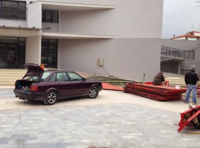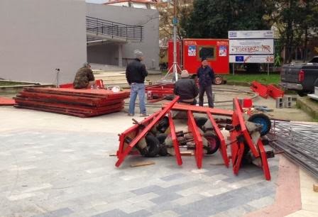 Ξεκίνησαν οι εργασίες για την τοποθέτηση του καρουζέλ μπροστά στο Πνευματικό Κέντρο Αλεξάνδρειας εν όψει των εορτών (διαβάστε περισσότερα για το καρουζέλ κάνοντας κλικ ΕΔΩ).Όπως θα δείτε και στα φωτογραφικά μας στιγμιότυπα, οι άνθρωποι της εταιρίας που ανέλαβε το έργο, βρισκόταν και σήμερα το πρωί του Σαββάτου στο Πνευματικό Κέντρο ξεκινώντας τις εργασίας τοποθέτησης. Εμείς τους πετύχαμε στο διάλειμμα.