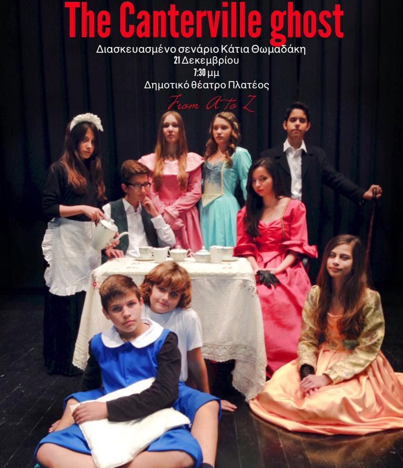 Το γνωστό μυθιστόρημα του Oscar Wilde, “The Canterville Ghost” (το φάντασμα του Κάντερβιλ) θα παίξουν τα παιδιά του φροντιστηρίου, σε διασκευασμένο σενάριο από την Κάτια Θωμαδάκη. Η είσοδος είναι δωρεάν για το κοινό!
