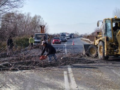 Ο δήμος ζήτησε τη συνδρομή της Πυροσβεστικής Υπηρεσίας Αλεξάνδρειας και του Α.Τ. Αλεξάνδρειας και οι δύο υπηρεσίες συνέβαλαν τόσο στην κοπή όσο και στην σωστή ρύθμιση της κυκλοφορίας του δρόμου.