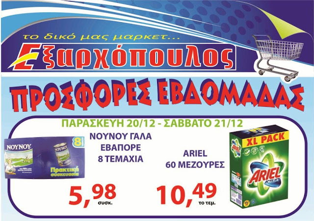 ΤΟΠΙΚΑ 20 Δεκεμβρίου, 2013 posted by admin Share Δύο μοναδικές προσφορές του ΕΞΑΡΧΟΠΟΥΛΟΥ για σήμερα και αύριο Συνεχίζουν τα διήμερα προσφορών τα τοπικά σούπερ μάρκετ ΕΞΑΡΧΟΠΟΥΛΟΣ σε Αλεξάνδρεια και Μελίκη. Για σήμερα Παρασκευή 20 και αύριο Σάββατο 21 Δεκεμβρίου στα δύο καταστήματα θα βρείτε την εξής προσφορά: Αφήστε μια απάντηση Ακύρωση απάντησηςΗ ηλ. διεύθυνση σας δεν δημοσιεύεται. Τα υποχρεωτικά πεδία σημειώνονται με *Σχόλιο * Όνομα Email Ιστότοπος Αποθήκευσε το όνομά μου, email, και τον ιστότοπο μου σε αυτόν τον πλοηγό για την επόμενη φορά που θα σχολιάσω.