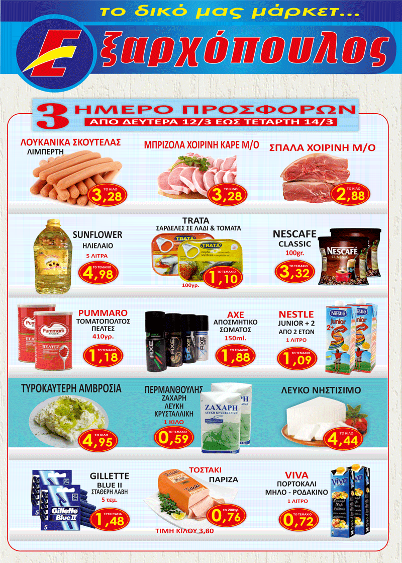 Το τοπικό σούπερ μάρκετ ΕΞΑΡΧΟΠΟΥΛΟΣ από την Δευτέρα 12 Μαρτίου μέχρι και την Τετάρτη 14 Μαρτίου πρόσθεσε ξανά 15 νέα έκτακτα προϊόντα στις προσφορές του καταστήματος!