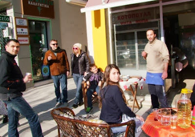 Καταστηματάρχες σε διάφορα σημεία της Αλεξάνδρειας κερνάνε μεζέδες, κρασί και γλυκά σε φίλους, πελάτες και περαστικούς.