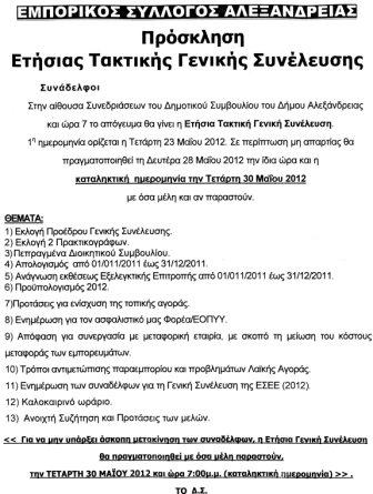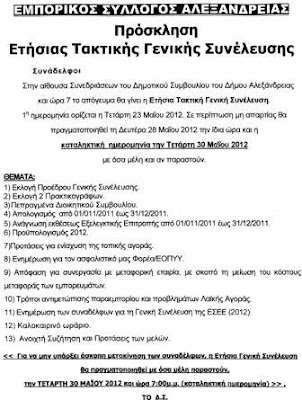 ΓΕΝΙΚΗ ΣΥΝΕΛΕΥΣΗ ΤΟΥ ΕΜΠΟΡΙΚΟΥ ΣΥΛΛΟΓΟΥ ΑΛΕΞΑΝΔΡΕΙΑΣ