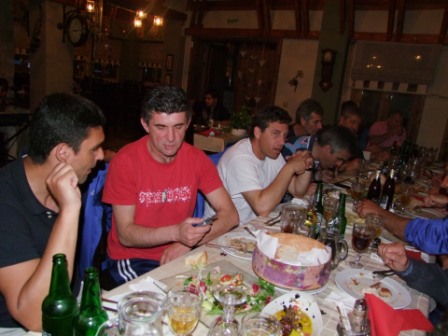 Όπως πάντα το τρίτο ημίχρονο είναι για τους Παλαίμαχους το καλύτερο και αυτό έγινε σε ένα από τα καλύτερα καταστήματα της περιοχής, στον ΕΚΕΙΜΕΡΟ, στο Ν. Πρόδρομο Αλεξάνδρειας. Τοποθεσία ιδανική, φαγητό πλούσιο και εξαιρετικό και η παρέα, παρέα με όλη τη σημασία της λέξης. Δέσανε αμέσως οι Παλαίμαχοι αν και βρισκόταν για πρώτη φορά, φυσικά ο συνδετικός κρίκος ήταν ο Παπαδημητρίου Βασίλης παλιός συμπαίκτης των Βετεράνων του ΠΑΣ, τον οποίο και τίμησαν. Τους τίμησε βέβαια και ο ίδιος με τα σπαράγγια και τη συνταγή που τους έδωσε.