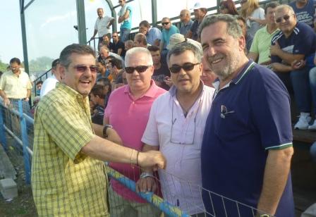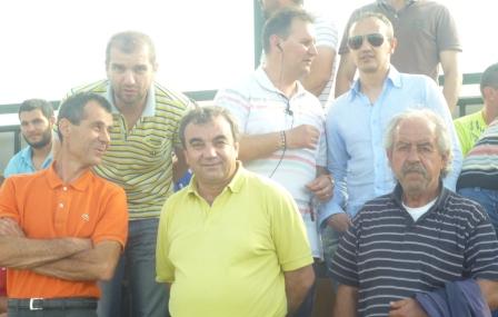 | Πρώην πρόεδρος της Αγκαθιάς Αριστείδης Ματσούκας με παλιούς παράγοντες της ομάδες και τον πρώην προπονητή της Αγκαθιάς Νίκο Παπανώτα |