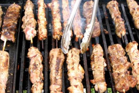 – Το περνάμε σε ξύλινα σουβλάκια βάζοντας εναλλάξ ένα κομματάκι κρέας, ένα κομματάκι κρεμμύδι και ένα κομματάκι δάφνη.