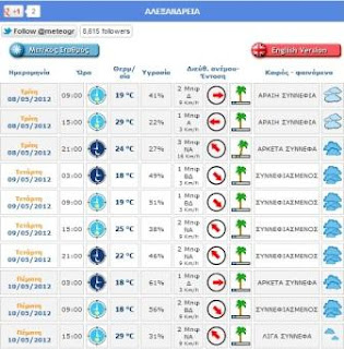 Καλό καιρό σε ολόκληρη τη χώρα με λίγες νεφώσεις που τις θερμές ώρες της ημέρας στα ηπειρωτικά θα αυξηθούν δίνοντας τοπικές βροχές ή καταιγίδες κυρίως στα ορεινά, αλλά και σε πεδινές περιοχές της Βόρειας Ελλάδας, περιμένουμε σήμερα Τρίτη 8 Μαΐου 2012.