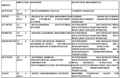 3. ΠΡΟΓΡΑΜΜΑ ΕΠΑΝΑΛΗΠΤΙΚΩΝ ΠΑΝΕΛΛΑΔΙΚΩΝ ΕΞΕΤΑΣΕΩΝ 2012 ΗΜΕΡΗΣΙΩΝ ΚΑΙ ΕΣΠΕΡΙΝΩΝ ΓΕΝΙΚΩΝ ΛΥΚΕΙΩΝ (ΓΕΛ)