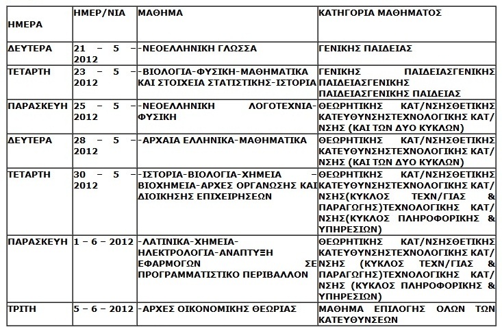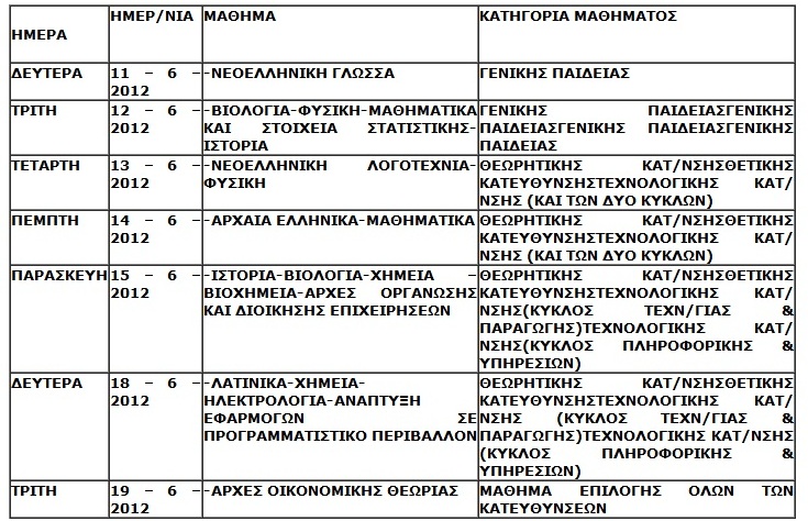 3. ΠΡΟΓΡΑΜΜΑ ΕΠΑΝΑΛΗΠΤΙΚΩΝ ΠΑΝΕΛΛΑΔΙΚΩΝ ΕΞΕΤΑΣΕΩΝ 2012 ΗΜΕΡΗΣΙΩΝ ΚΑΙ ΕΣΠΕΡΙΝΩΝ ΓΕΝΙΚΩΝ ΛΥΚΕΙΩΝ (ΓΕΛ)