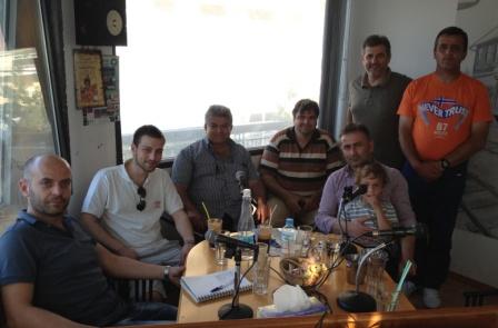 Με τον καλύτερο τρόπο έκλεισαν τον κύκλο των αθλητικών εκπομπών του Ράδιο Αλεξάνδρεια για την περίοδο 2011-2012 χτες ο Βίλλης Γαλανομάτης και ο Τάσος Ντομουχτσής. Έχοντας καλεσμένους τους ανταποκριτές-συνεργάτες στο στούντιο αλλά και τηλεφωνικά αποχαιρέτησαν την σαιζόν που τελείωσε και ανανέωσαν το ραντεβού τους για τον Σεπτέμβριο που ξεκινάει η νέα ποδοσφαιρική περίοδος. Στην φωτογραφία από αριστερά: Αργύρης Τσιγγενόπουλος, Σίμος Πουλασουχίδης, Στέλιος Πεχλιβανίδης, Νίκος Λιολιόπουλος, Βίλλης Γαλανομάτης, Νίκος Βασιλειάδης και ο Φίλιππας Γιαννακίδης με τον γιο του.