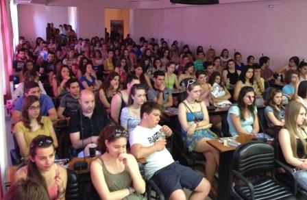 | Μικρή αποδείχθηκε η αίθουσα του Επιμελητηρίου η οποία κατακλείστηκε από μαθητές και γονείς που παρακολούθησαν με μεγάλο ενδιαφέρον την εκδήλωση |