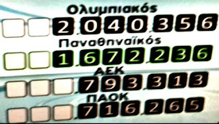 Ο Ολυμπιακός είναι πρωταθλητής και στους φιλάθλους όπου 2.040.356 κόσμος δηλώνει πως υποστηρίζει τους Πειραιώτες. Σε σχετική έρευνα που μεταδώθηκε από τον τηλεοπτικό σταθμό ΣΚΑΪ και τον Γιάννη Αλαφούζο που ήταν καλεσμένος στην εκπομπή «Δίκη», ο Παναθηναϊκός καταλαμβάνει την δεύτερη θέση με 1.672.236 οπαδούς και ακολουθούν ΑΕΚ και ΠΑΟΚ με 793.313 και 716.265, αντίστοιχα.