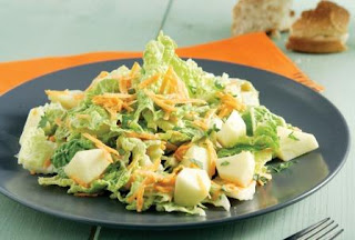 1. Πλένουμε και κόβουμε τα λαχανικά και στη συνέχεια τα βάζουμε σε μια σαλατιέρα.