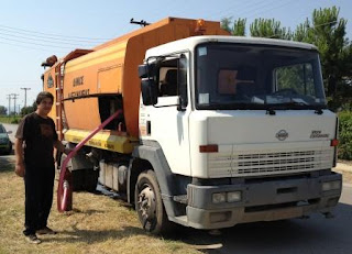 Δεν μπορεί να αμφισβητήσει κανείς την εργατικότητα του Προέδρου της δημοτικής κοινότητας Αλεξάνδρειας Απόστολου Ρεσινιώτη. Χτες στις ετοιμασίες για το πανηγύρι της Αγίας Κυριακής ο Απόστολος ήταν στην πρώτη γραμμή για να είναι όλα στην τελειότητα. Η φώτο από χτες με την υδροφόρα του δήμου.