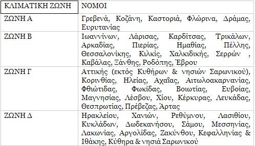 Και πως θα μάθω σε ποια ζώνη ανήκει το δικό μου σπίτι;Θα χρησιμοποιήσετε τον ακόλουθο πίνακα: