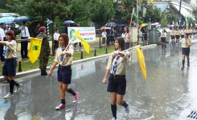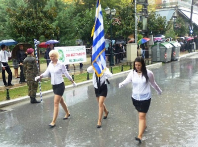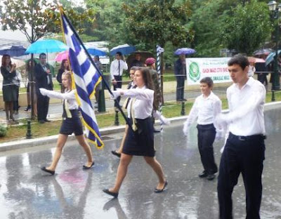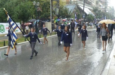 Με εναλλαγές αποφάσεων για το αν θα γίνει ή όχι η παρέλαση ολοκληρώθηκαν πριν από λίγο οι εκδηλώσεις για τον εορτασμό της Επετείου του “ΟΧΙ” στην Αλεξάνδρεια. Ενώ στην αρχή αποφασίστηκε να παρελάσουν όλα τα σχολεία και οι σύλλογοι, 15 περίπου λεπτά πριν την έναρξη της παρέλασης η απόφαση άλλαξε για να παρελάσει μόνο ο στρατός (όπως σας είχαμε ενημερώσει στο σχετικό άρθρο). Υπήρξε όμως ακόμα μία αλλαγή απόφασης η οποία ήταν και η τελική. Δηλαδή να παρελάσουν οι σημαίες των σχολείων και ο στρατός. Στην παρέλαση με δική τους πρωτοβουλία έλαβαν μέρος ο… Σύλλογος Ντόπιων Αλεξάνδρειας και περιχώρων “Το Ρουμλούκι” και οι Πρόσκοποι Αλεξάνδρειας. Αξίζουν πολλά συγχαρητήρια σε όλους, που αγνόησαν την βροχή και το κρύο και τίμησαν με τον πιο λαμπρό τρόπο την σημερινή Επέτειο.