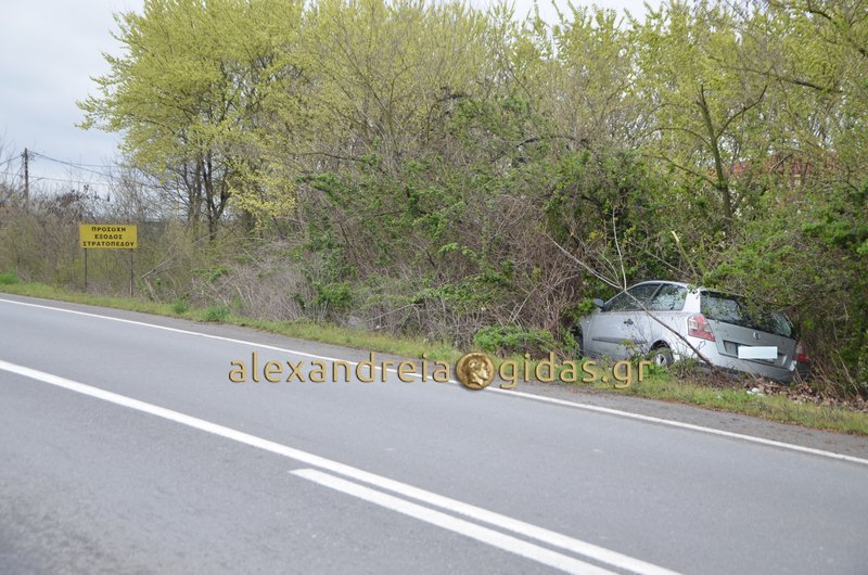 Τροχαίο ατύχημα σημειώθηκε μπροστά στο στρατόπεδο του Μακεδονομάχου Πρόιου στο Παλαιοχώρι  του δήμου Αλεξάνδρειας.