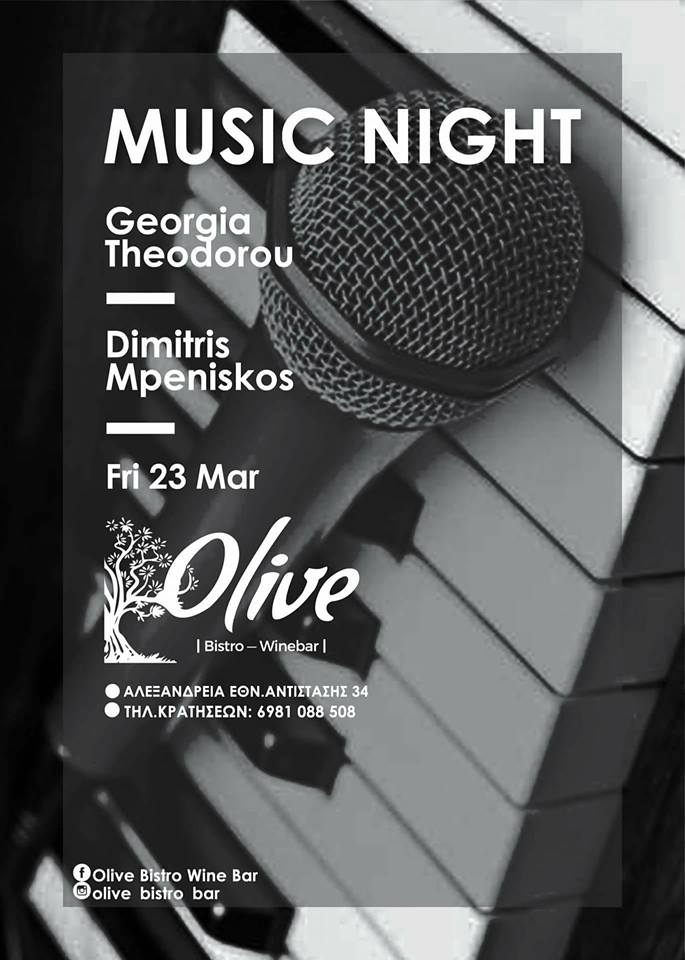 Σε μία ακόμα βραδιά ζωντανής μουσικής την Παρασκευή 23 Μαρτίου το OLIVE Bistro στον πεζόδρομο της Αλεξάνδρειας.