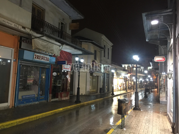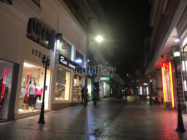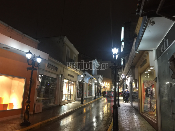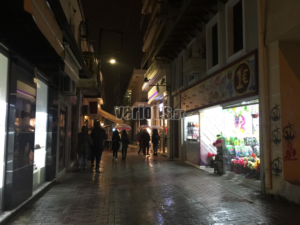 Η κίνηση όπως ήταν αναμενόμενο ήταν υποτονική, ειδικά όσο περνούσε η ώρα και η βροχή δυνάμωνε και το κρύο αναλογικά με την εποχή τσουχτερό. Ώρα 10 το βράδυ και ελάχιστοι ήταν οι καταναλωτές που μπαινόβγαιναν στα καταστήματα. Πολλοί από αυτούς, αφού έκαναν τη βόλτα τους, κατέφυγαν στα καφέ του κέντρου για να στεγνώσουν και να ζεσταθούν.