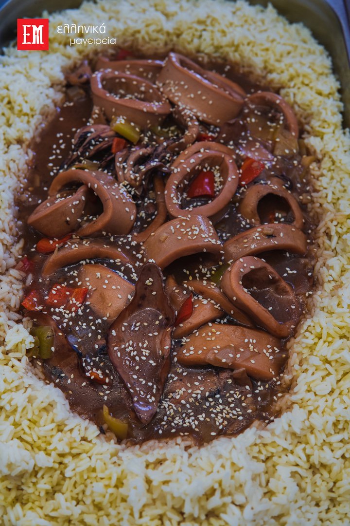 Καλαμαράκια γεμιστά με ρύζι κοκκινιστά