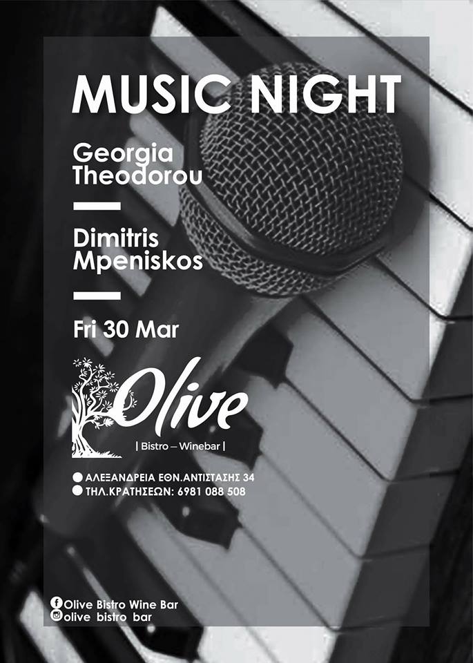 Σε μία ακόμα βραδιά ζωντανής μουσικής την Παρασκευή 30 Μαρτίου το OLIVE Bistro στον πεζόδρομο της Αλεξάνδρειας.