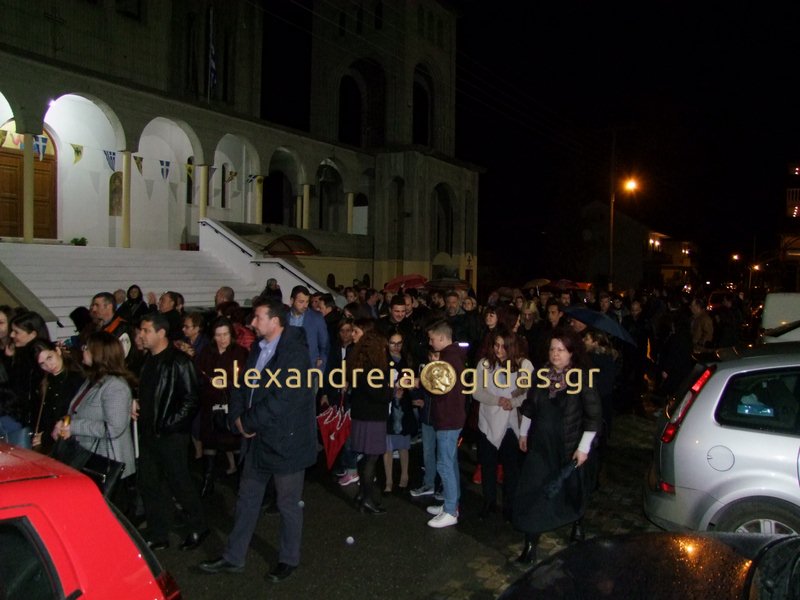 Αρκετός ήταν ο κόσμος ο οποίος αγνόησε τη βροχή και βρέθηκε στον Ιερό Ναό Αγίων Κυρίλλου και Μεθοδίου Αλεξάνδρειας για την περιφορά του επιτάφιου σήμερα Μεγάλη Παρασκευή 6 Απριλίου.
