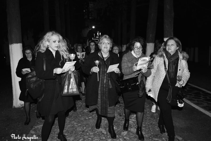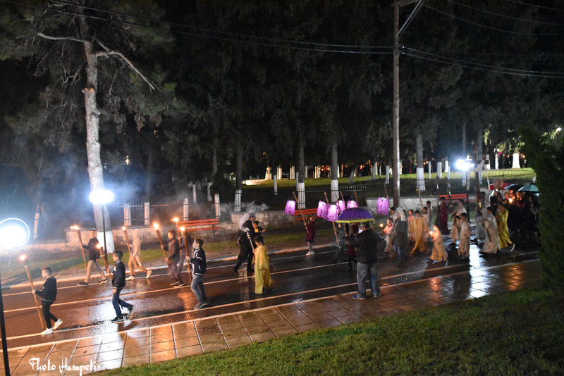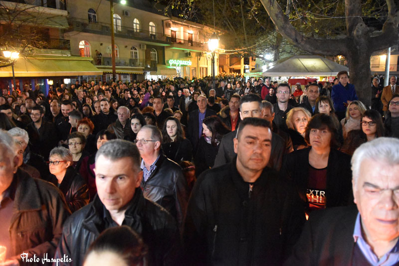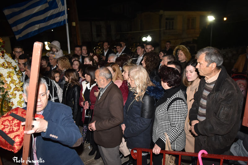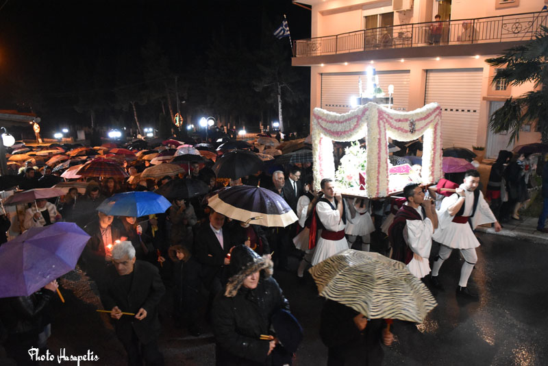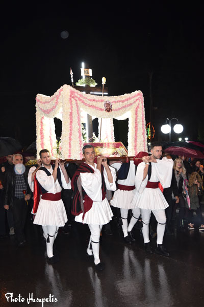 Οι δύο, περίτεχνα στολισμένοι, Επιτάφιοι αφού συναντήθηκαν στην διασταύρωση «Σαμαρά» πορεύτηκαν υπό τους πένθιμους ήχους της φιλαρμονικής μέχρι την κεντρική πλατεία και στην συνέχεια χώρισαν ακολουθώντας ο καθένας ξεχωριστή πορεία για τους δύο ενοριακούς ναούς.