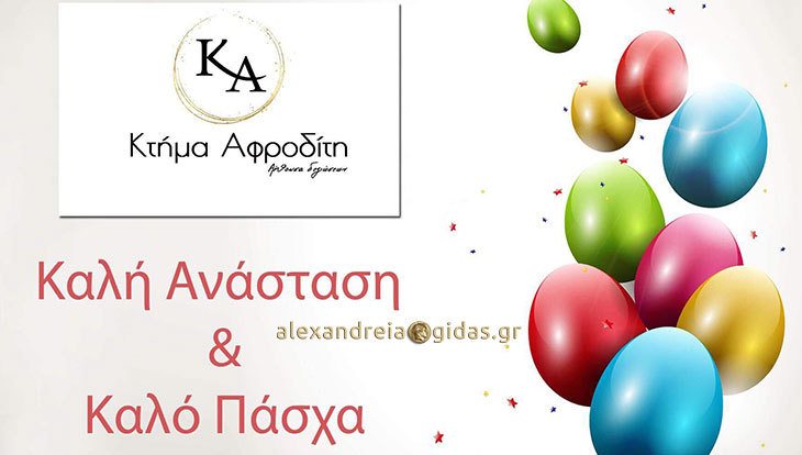 Η διεύθυνση και το προσωπικό της αίθουσας δεξιώσεων Κτήμα Αφροδίτη στο Καλοχώρι του δήμου Αλεξάνδρειας εύχονται σε όλους Καλή Ανάσταση και Καλό Πάσχα!