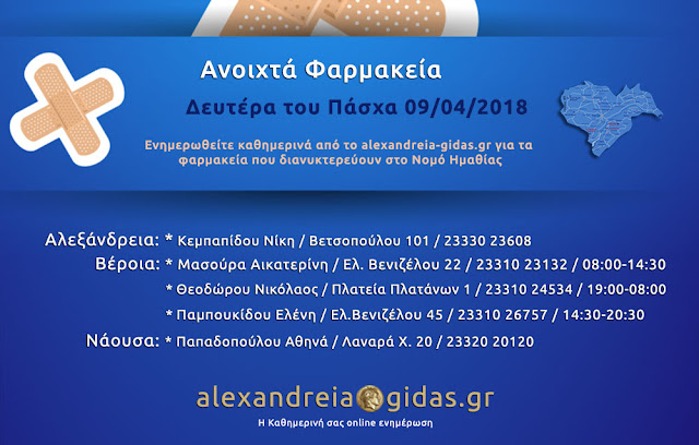 ΤΟΠΙΚΑ 9 Απριλίου, 2018 posted by admin Share Ανοιχτά φαρμακεία Ημαθίας Δευτέρα του Πάσχα 9 Απριλίου Αλεξάνδρεια: Αφήστε μια απάντηση Ακύρωση απάντησηςΗ ηλ. διεύθυνση σας δεν δημοσιεύεται. Τα υποχρεωτικά πεδία σημειώνονται με *Σχόλιο * Όνομα Email Ιστότοπος Αποθήκευσε το όνομά μου, email, και τον ιστότοπο μου σε αυτόν τον πλοηγό για την επόμενη φορά που θα σχολιάσω.