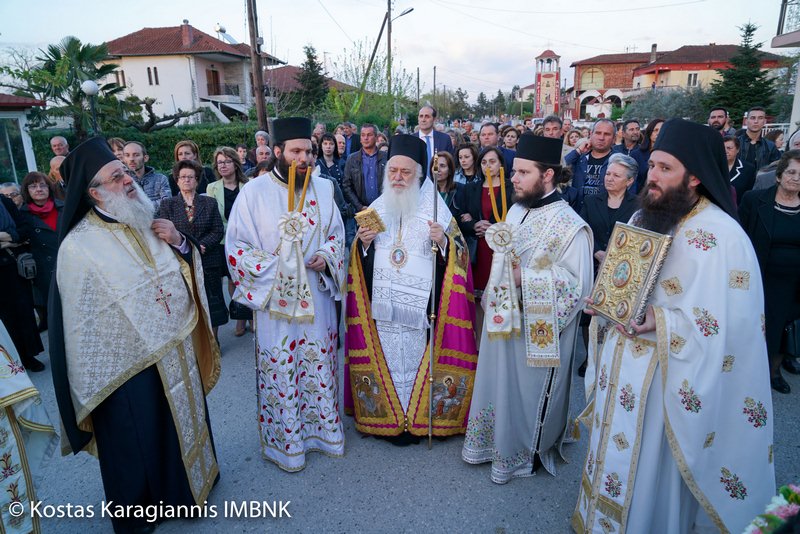 Το εσπέρας της εορτής ο Σεβασμιώτατος Μητροπολίτης Βεροίας, Ναούσης και Καμπανίας κ. Παντελεήμων χοροστάτησε στον Πανηγυρικό Εσπερινό και κήρυξε τον θείο λόγο στο Ιερό Παρεκκλήσιο των εορταζόντων Αγίων στο Λουτρό.
