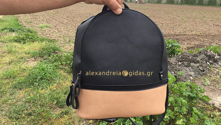 Η γυναικεία τσάντα της φωτογραφίας βρέθηκε ανάμεσα στα Καβάσιλα και το Καλοχώρι του δήμου Αλεξάνδρειας.