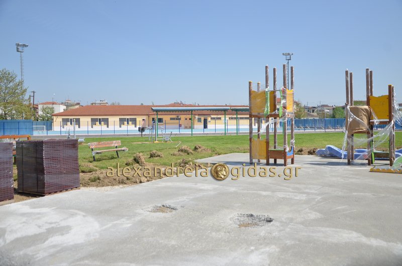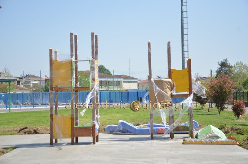 Η παιδική χαρά ετοιμάζεται πίσω από το κολυμβητήριο και σίγουρα αναμένεται να γίνει πόλος έλξης για τους μικρούς φίλους στη διάρκεια της καλοκαιρινής περιόδου που ξεκινάει.
