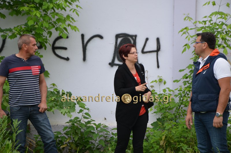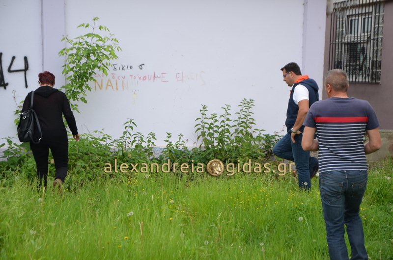 Οι δημοτικοί σύμβουλοι είδαν από κοντά τόσο την τρύπα που υπάρχει σε τοίχο του Νηπιαγωγείου και δημιουργεί πολλά προβλήματα στους μικρούς μαθητές, τα χόρτα στους εξωτερικούς χώρους αλλά και το βάψιμο που χρειάζεται το κτίριο.